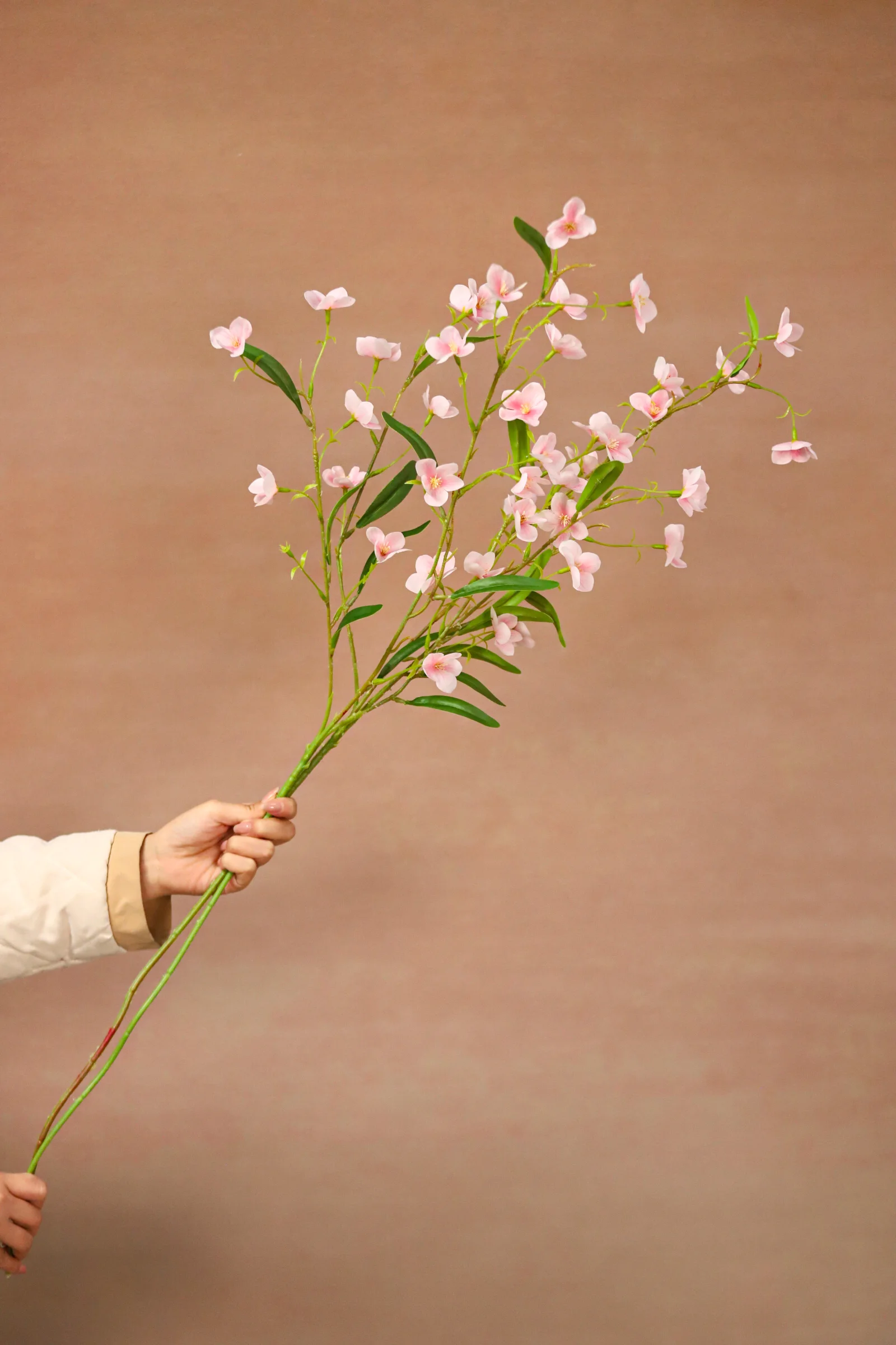 Every detail of the faux forsythia is crafted with meticulous precision. The branches are designed to replicate the natural arching growth habit of real forsythia shrubs, adding a sense of dynamic elegance to any arrangement. Each golden flower, with its distinct four-petal structure and subtle veining, is hand-finished to capture the wild, unrestrained beauty of natural forsythia blooms. The dense distribution of flowers on the branches creates a striking “golden waterfall” effect, just like the full bloom of real forsythia in early spring. The flexible metal core inside the branches allows you to bend and shape them freely, enabling customization to fit different vases or decorative scenarios.