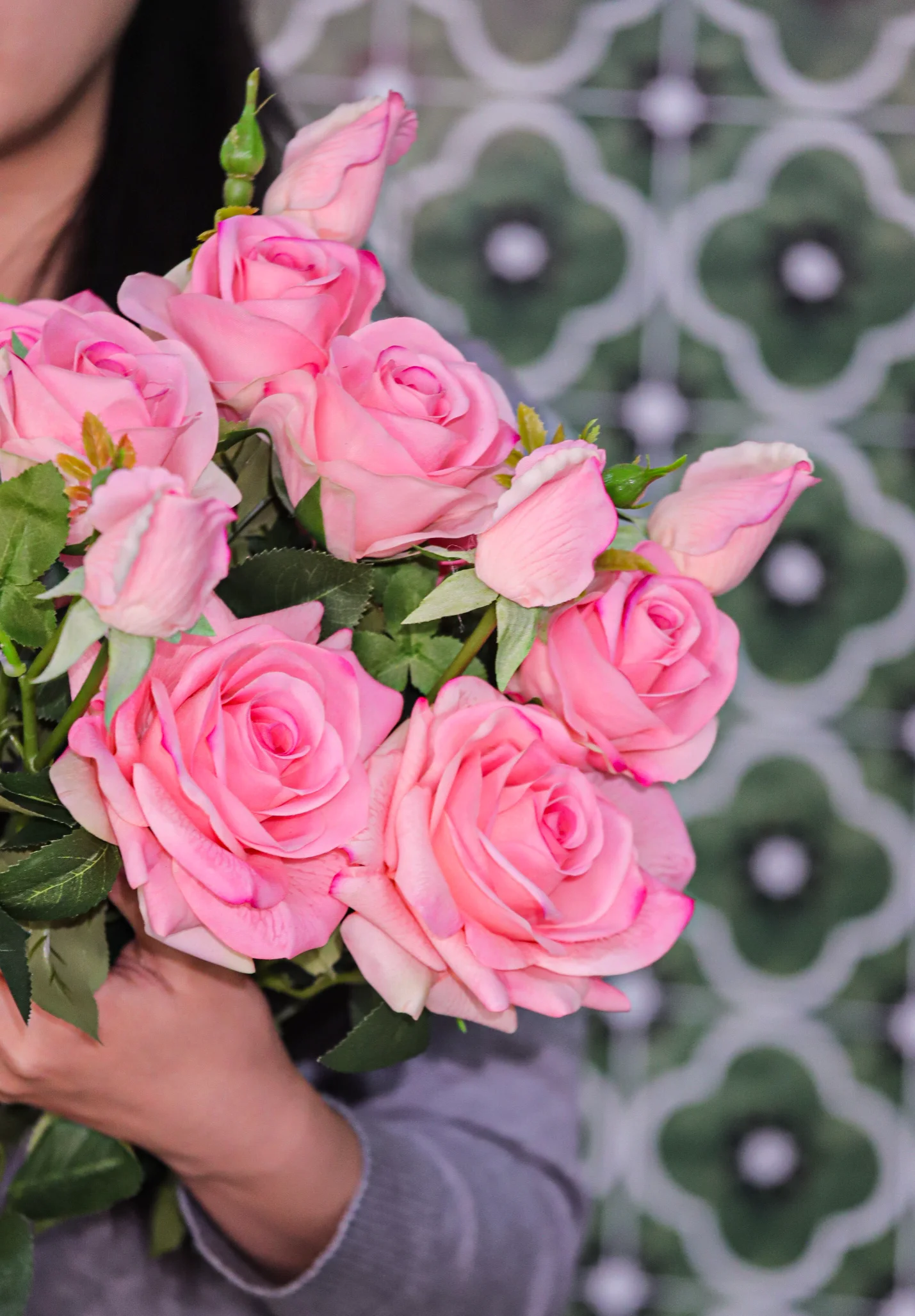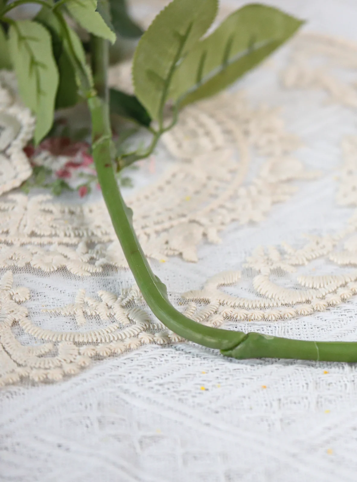 The stems and petals are usually bent for shipping. To restore their shape, gently and manually bend the internal wire stems to reshape the bouquet or arrangement. You can also use a low-setting hairdryer to carefully soften and reshape crumpled petals.
