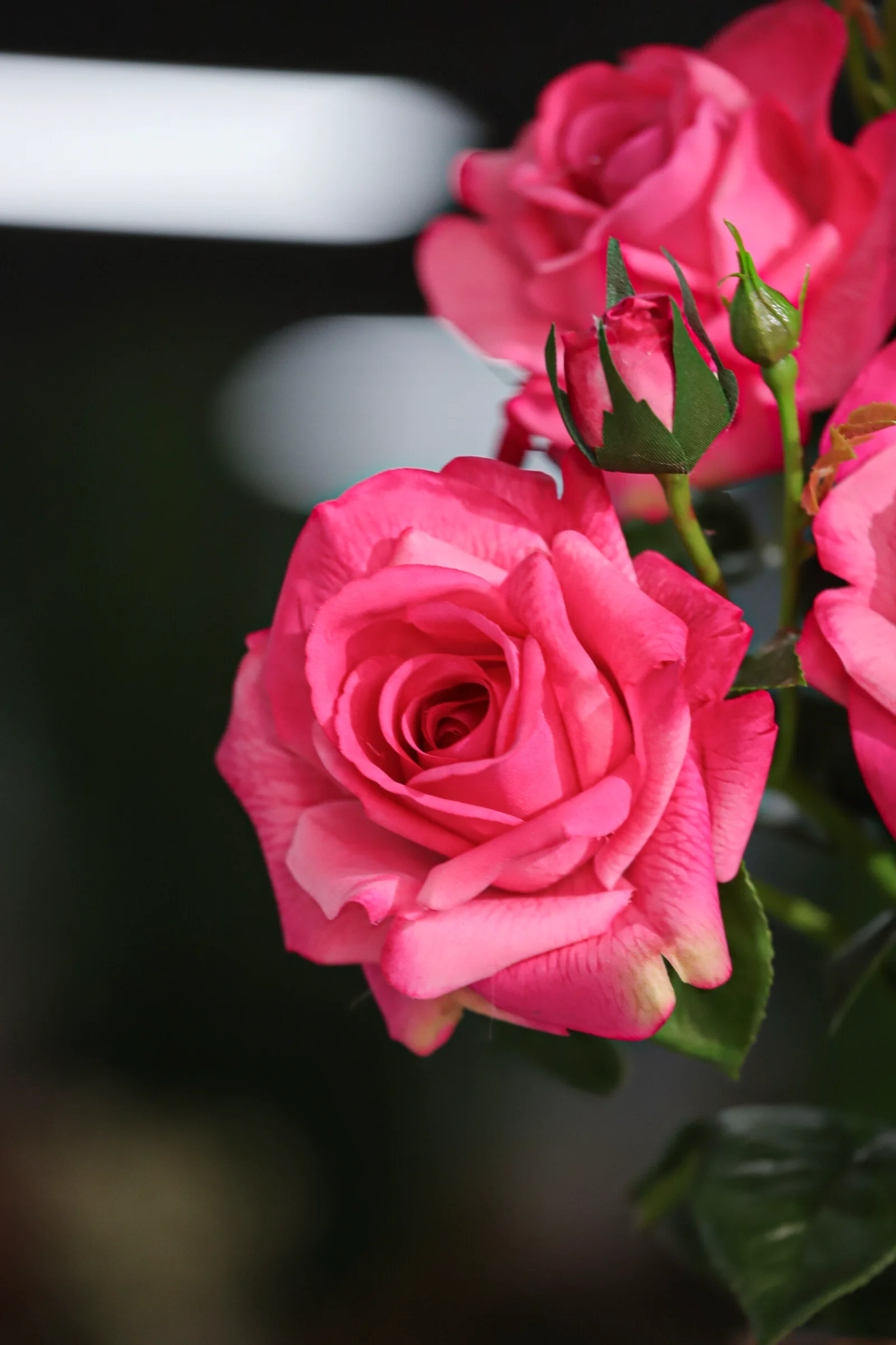 Fuchsia 3 Heads Real touch Latex Rose: Vivid, Lifelike Blooms for Timeless Elegance