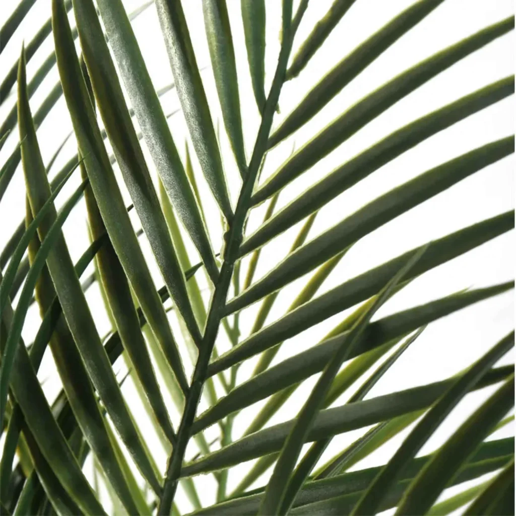 Artificial Areca Palm Tree Plant features lush, ultra-realistic feathery fronds and vibrant natural green foliage, crafted to bring soft tropical botanical elegance to any indoor living space and shaded outdoor area. This premium faux areca palm plant boasts a full, dense silhouette with lifelike leaf textures and sturdy stems, requiring zero watering, pruning, sunlight or regular maintenance—effortless greenery that retains its fresh, vibrant look year-round with no wilting, browning or fading. Ideal for home decor, office interiors, bright living rooms, cozy bedrooms, entryways and commercial spaces, this artificial palm tree blends seamlessly with modern, boho, coastal, minimalist and tropical decor styles. It delivers all the serene visual charm of a real areca palm without the care demands, a hassle-free decorative green plant perfect for plant lovers, busy homeowners and anyone seeking lasting tropical aesthetics with zero upkeep.