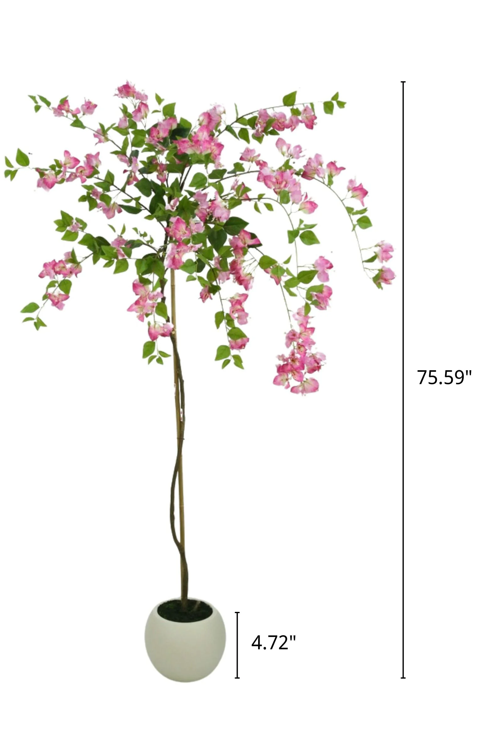 Artificial Bougainvillea Tree Indoor with White Planter for Home Decor -75.59″