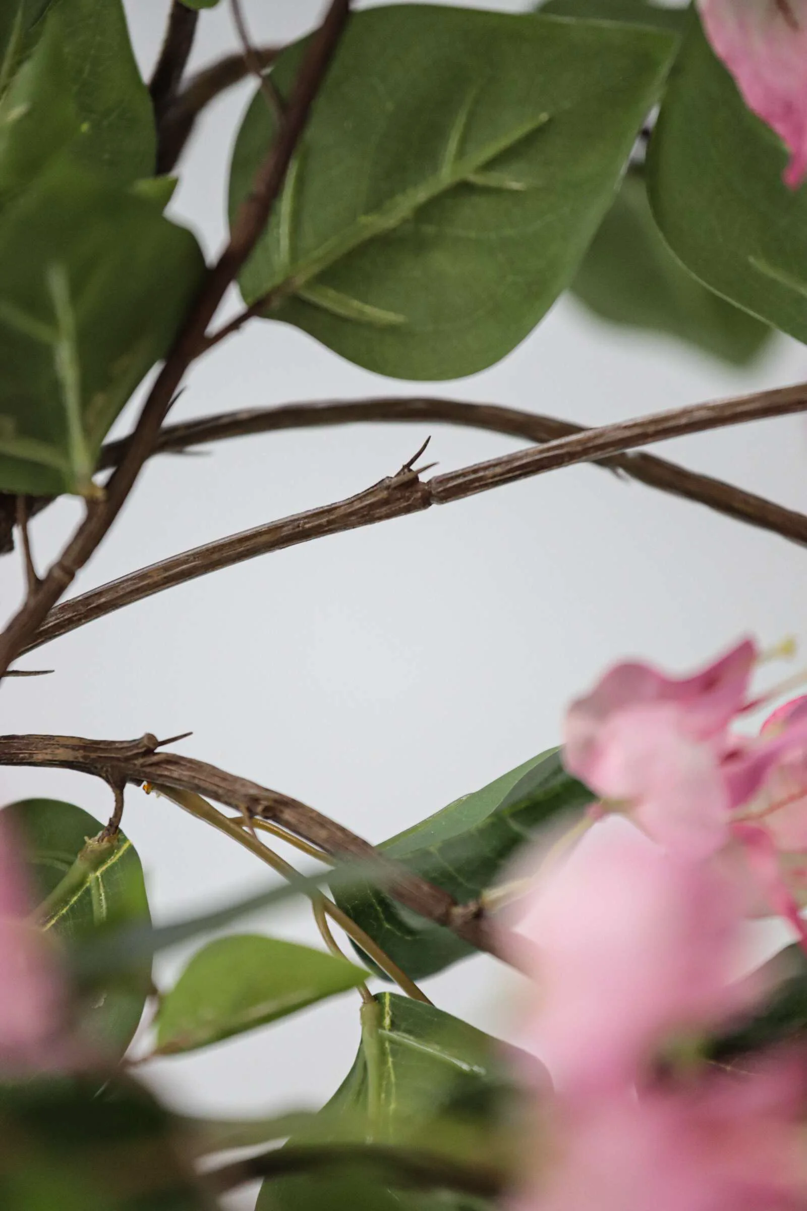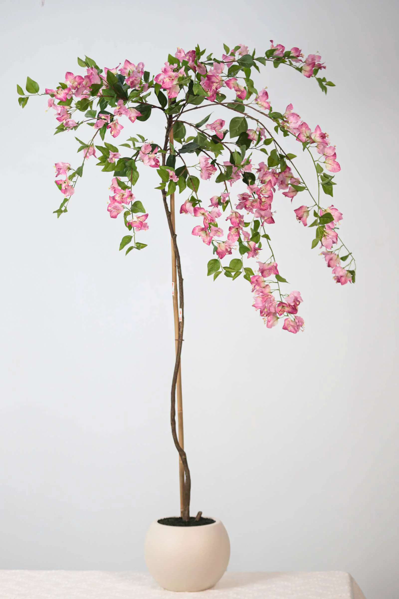 Bring vibrant tropical charm into any space with our artificial Bougainvillea Tree – a stunning replica crafted for realism and durability. Featuring intricately detailed leaves made from high-quality rubberized fabric leaves, each leaf varies in size and vein pattern for added authenticity. The gradient-colored petals mimic natural color transitions, while the detachable trunk is reinforced with bamboo and designed with an integrated branch structure, ensuring both strength and lifelike shape. Perfect for retail showrooms, office lobbies, restaurants, or hotel atriums, this faux Bougainvillea offers zero maintenance and year-round color. Custom sizes and finishes available for bulk orders.