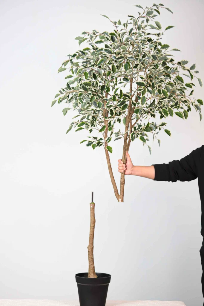 Bring effortless greenery into your space with this lifelike potted artificial Ficus tree. Designed with a removable trunk for easy setup, this faux tree features a natural-shaped structure, densely layered branches, and realistic textured leaves. The treated trunk mimics the organic texture of real wood, while the base is finished with faux moss for an added touch of authenticity. Whether you’re styling a cozy corner or elevating a modern office, this ficus tree brings a fresh, low-maintenance aesthetic that stays vibrant all year round — no watering or pruning required.