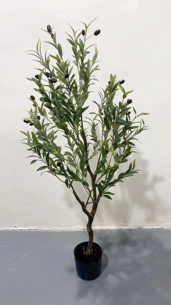 Artificial Olive Tree features authentic Mediterranean charm with realistic silvery-green two-tone foliage, natural wood-grained trunks, and lifelike olive fruits in gradient green/brown hues. Crafted from premium silk leaves and durable materials, this maintenance-free artificial tree requires zero watering or pruning while retaining lush vibrant aesthetics year-round. Perfect for indoor home & office spaces and shaded outdoor patios, its adjustable branches allow customization for any space, adding timeless elegance without upkeep hassles.