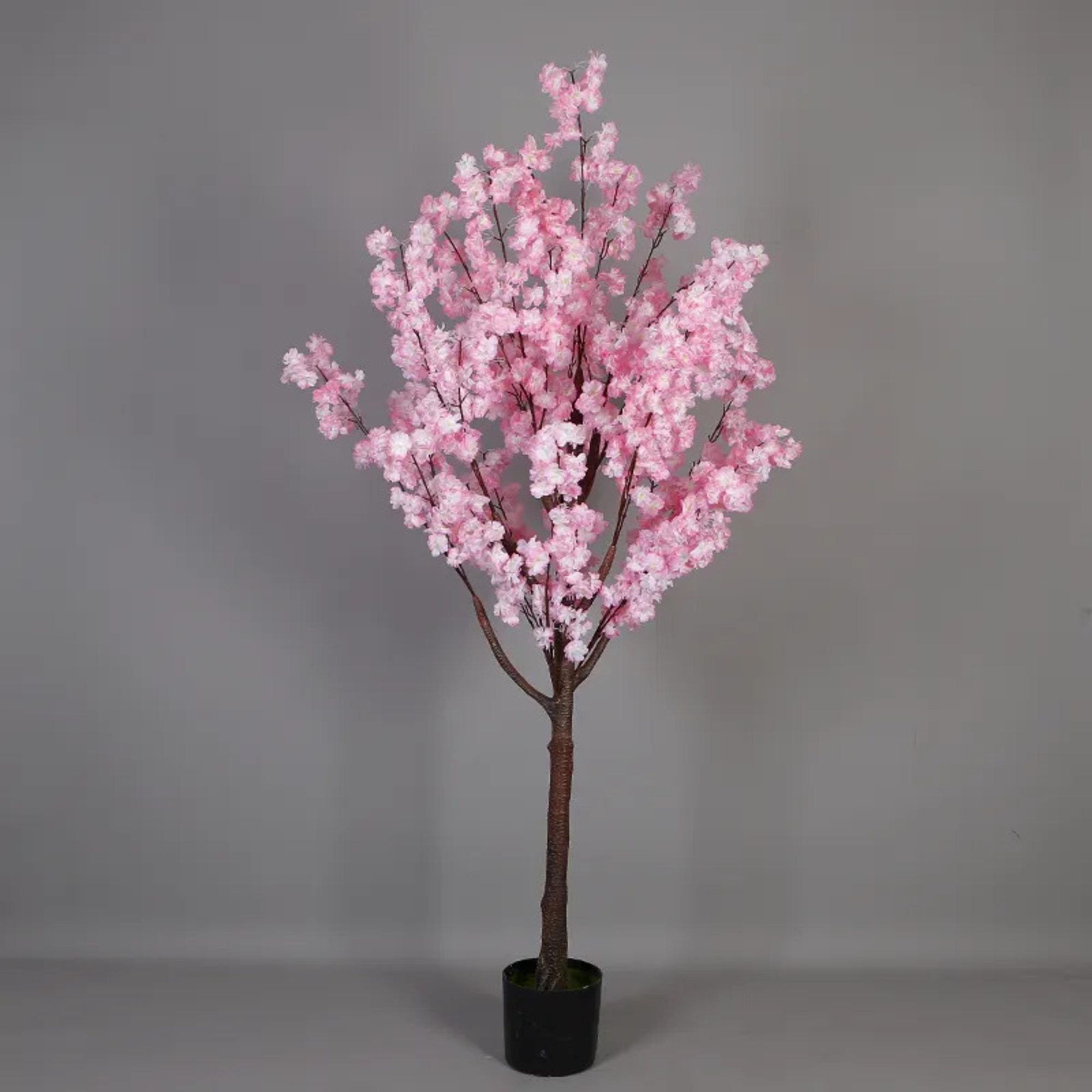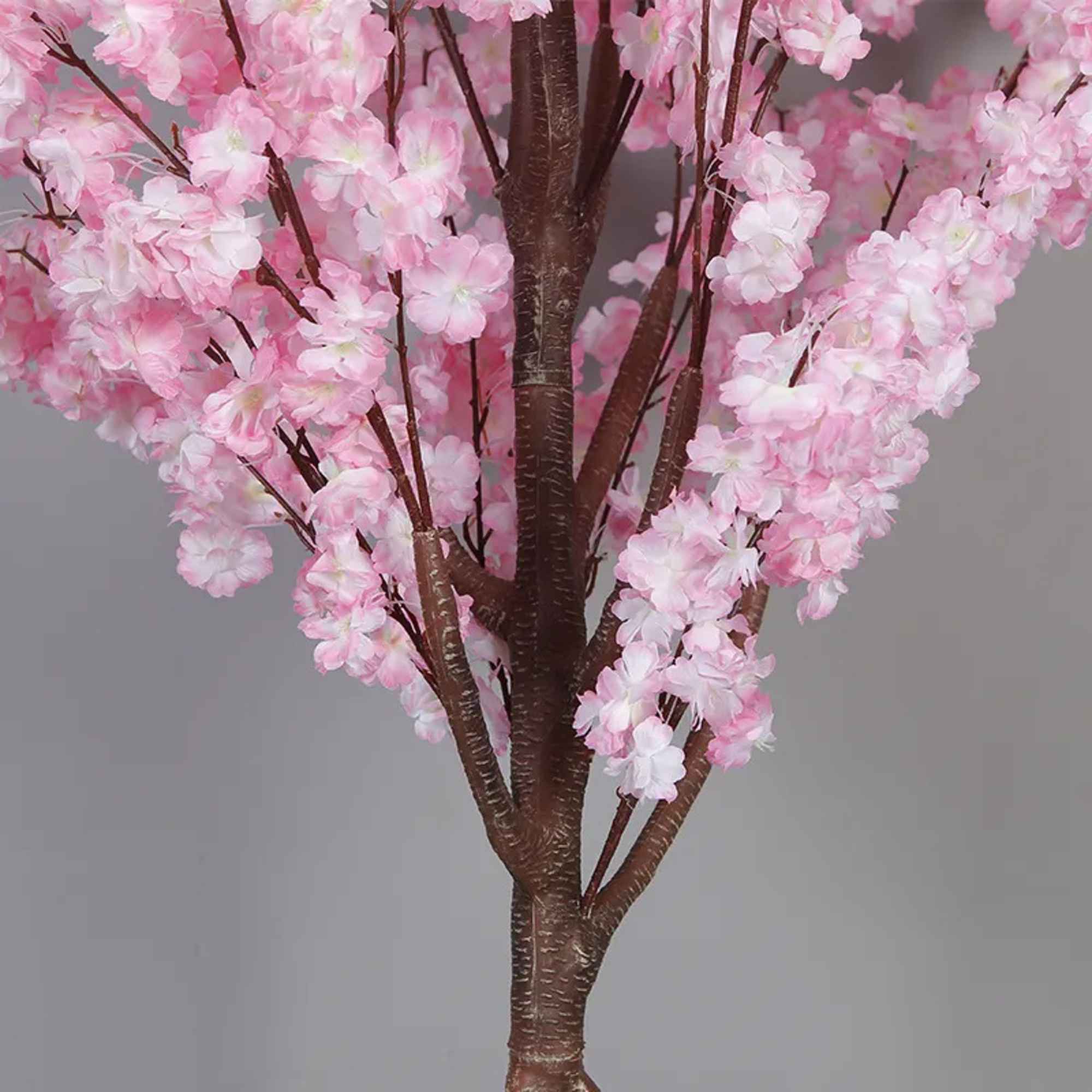 Artificial Plant Cherry Blossom Tree Sakura Tree features lifelike layered pink & white blossom clusters with delicate silk petals and natural woody branches, bringing romantic floral charm to indoor spaces. Zero watering or maintenance needed, fade-resistant durable construction retains fresh blooming aesthetics year-round, ideal hassle-free decor for home, office and living room styling with elegant appeal.