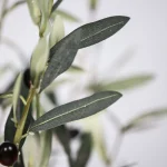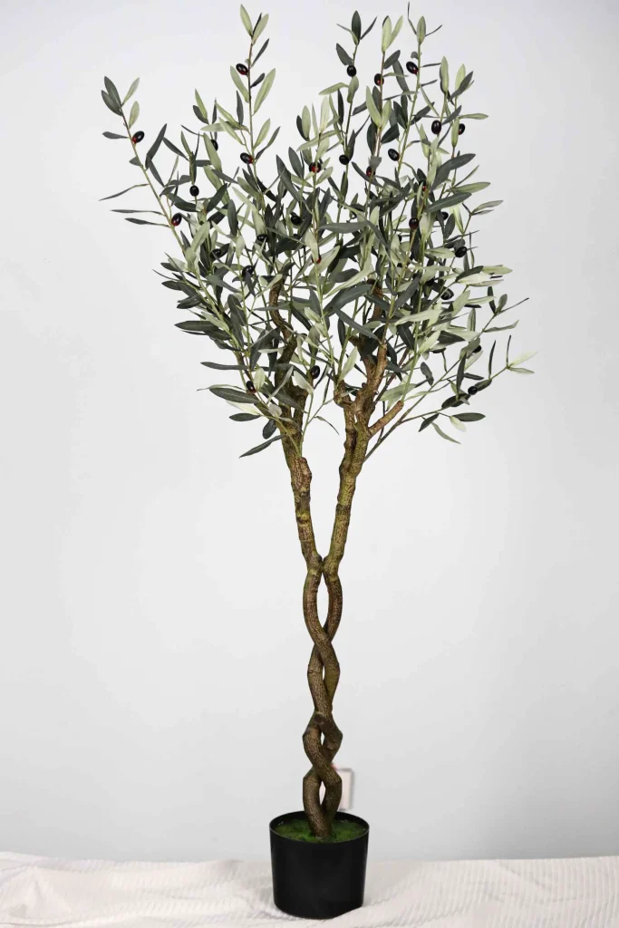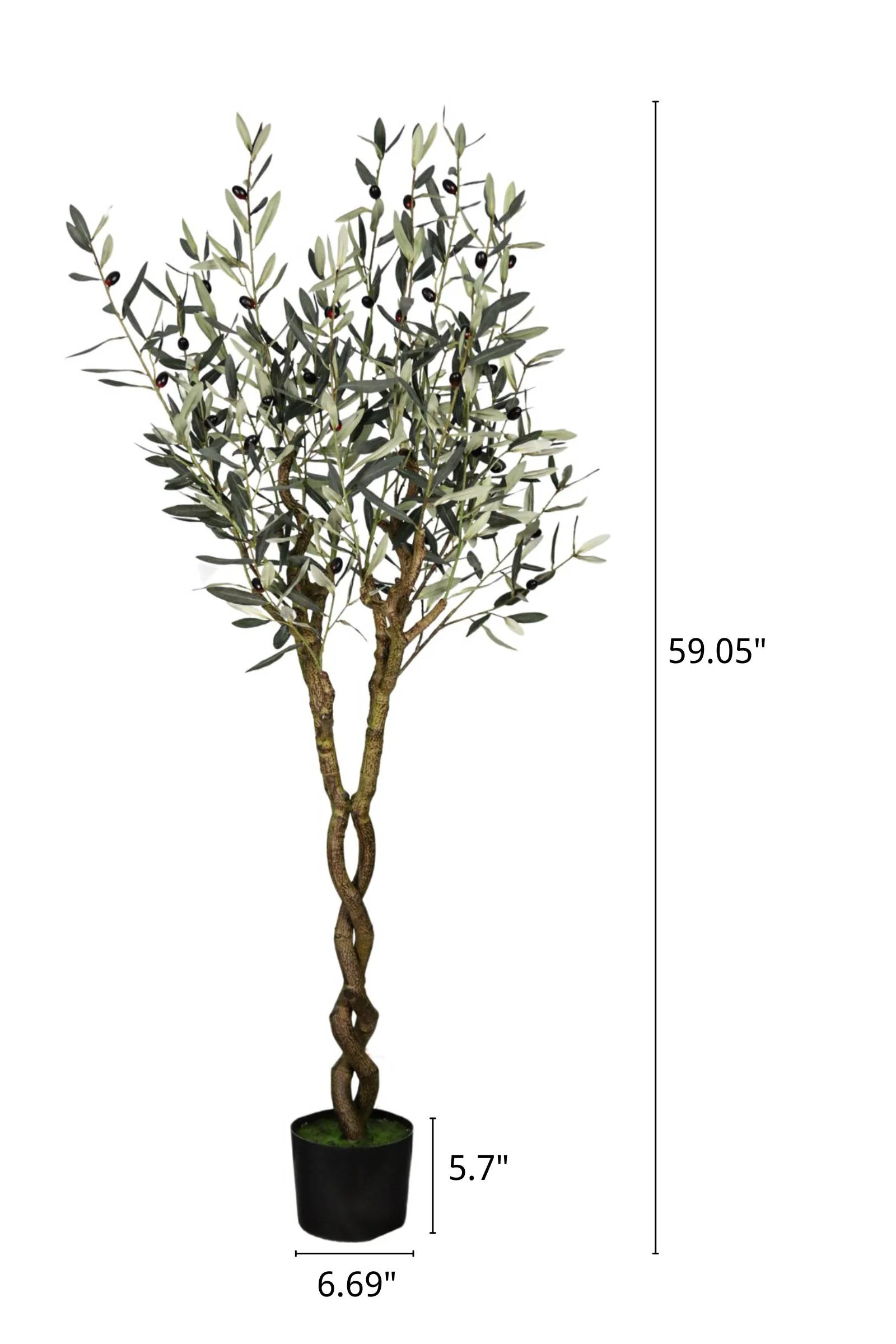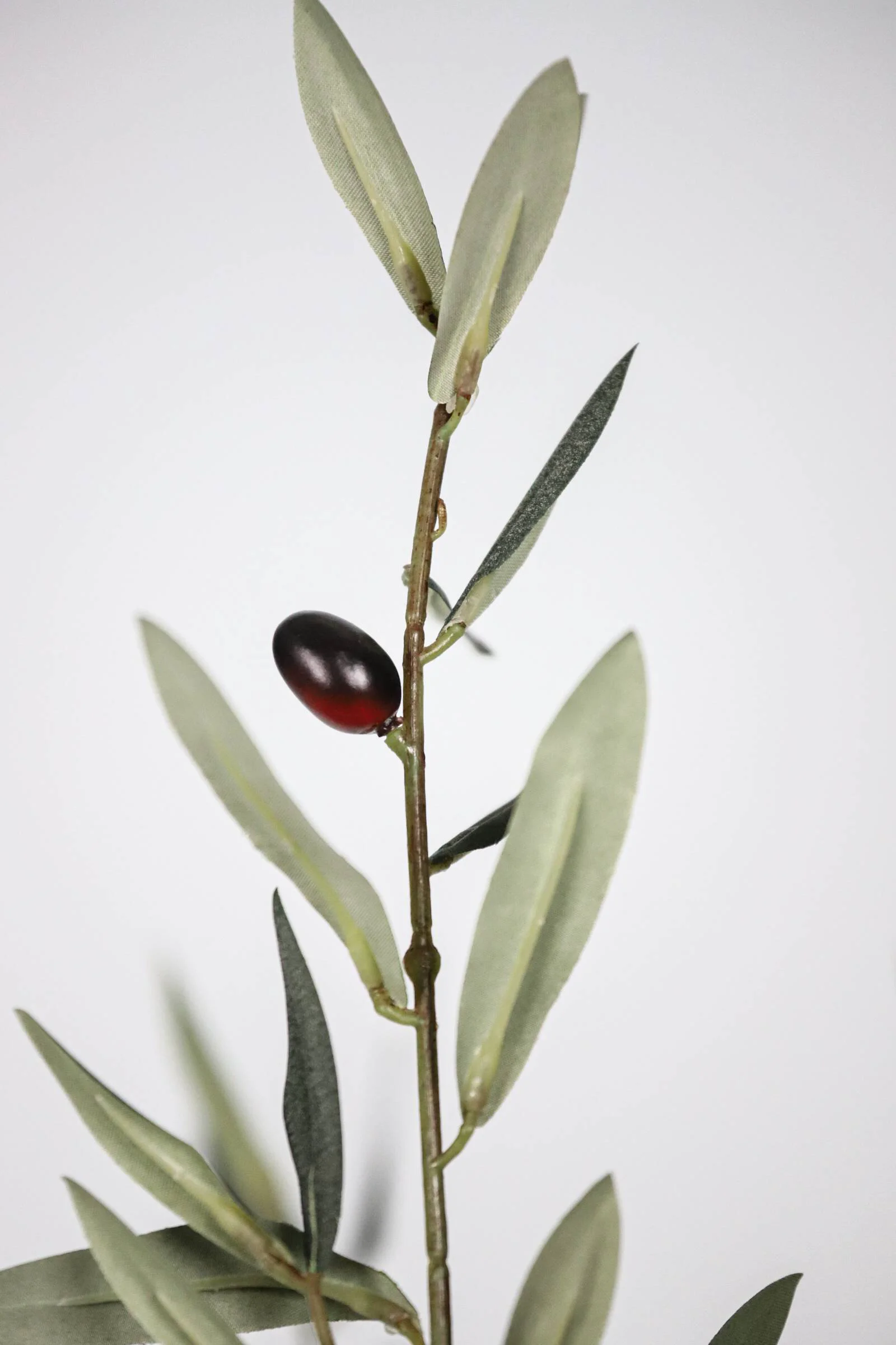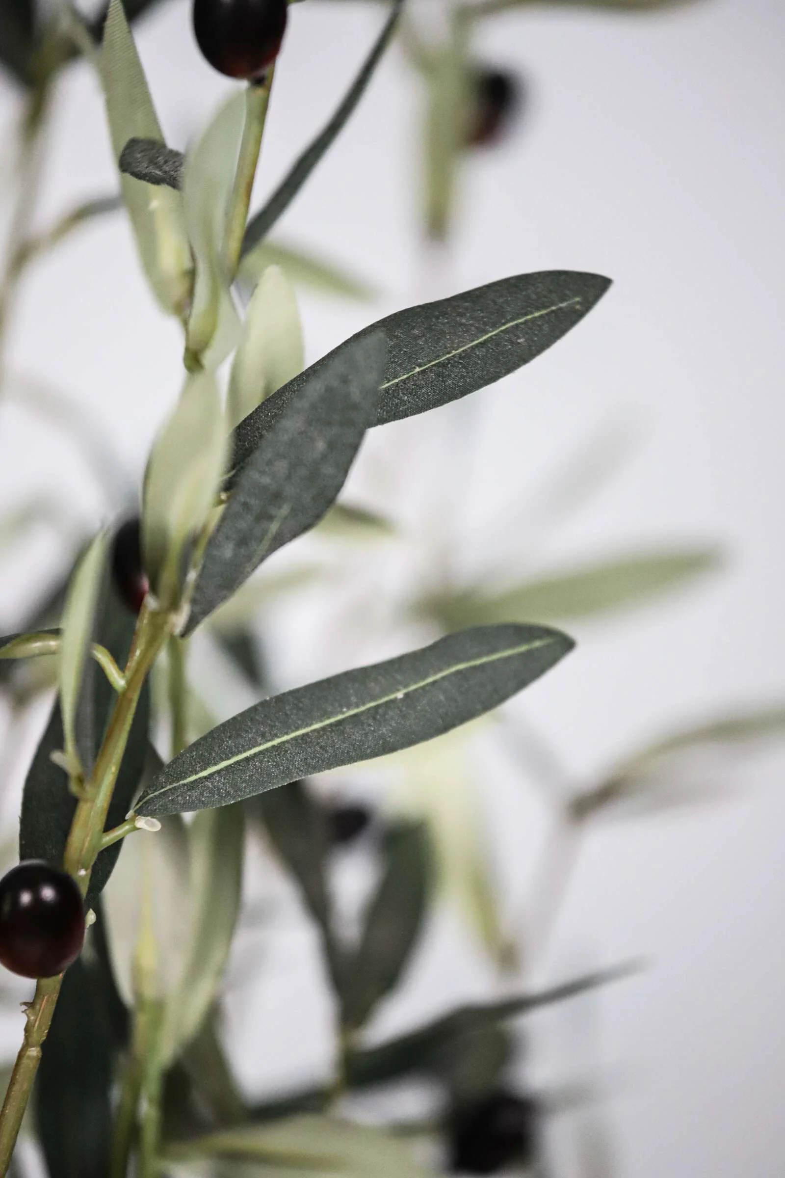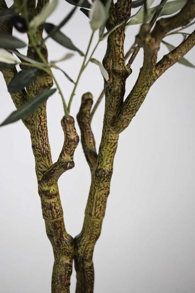 This faux Olive tree potted features a detachable trunk for easy assembly, silk leaves with a weathered white-tip finish, realistic foam olive fruits, and a naturally textured trunk and perfect for indoor décor.
