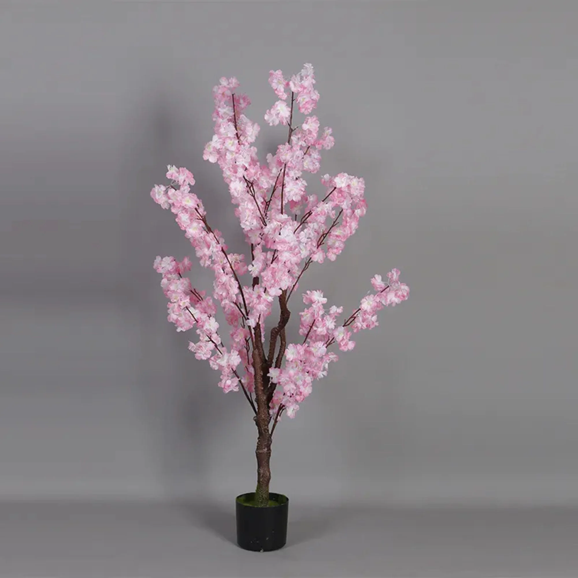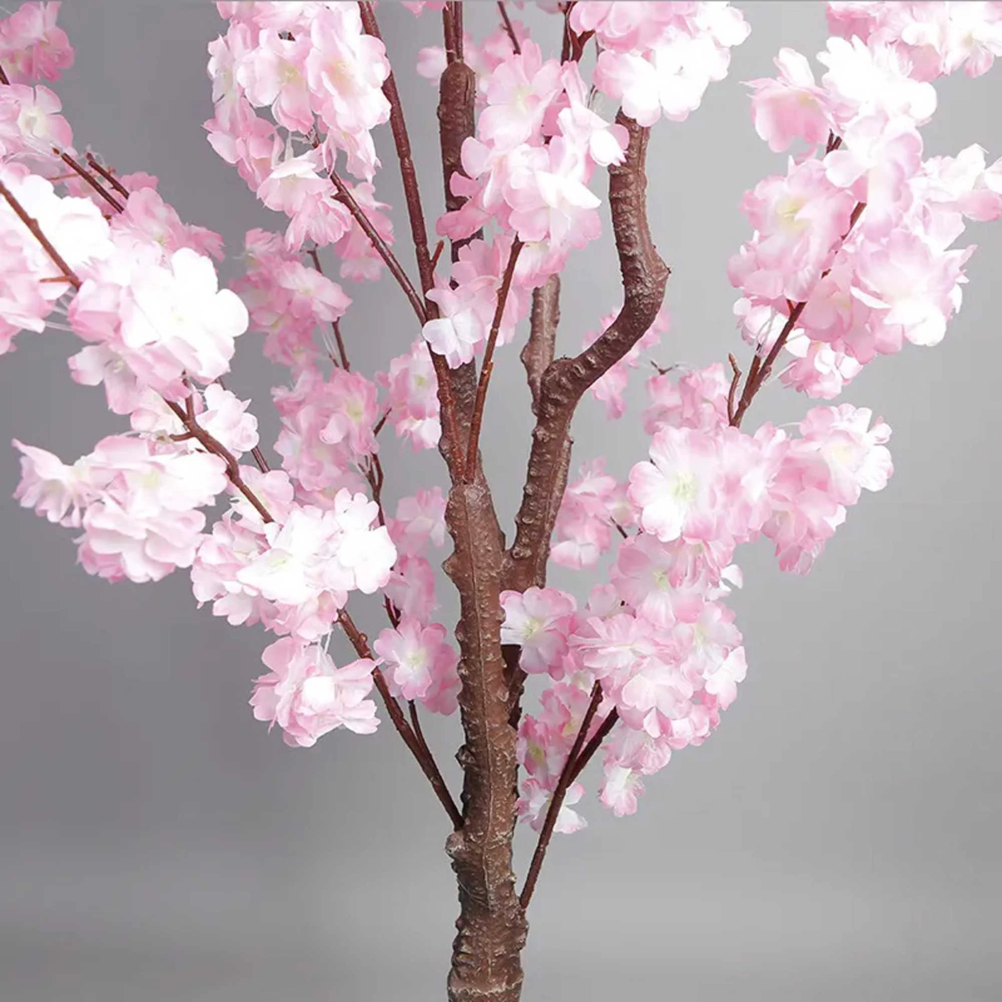 Faux Cherry Blossom Tree Artificial Plant features abundant lifelike pink and white sakura blooms with soft silk petals and natural woody branches, adding romantic floral elegance to any indoor space. Fade-resistant and maintenance-free with zero watering needed, this durable faux tree retains its full blooming beauty year-round, ideal decorative plant for home, office and living room styling with timeless charm.