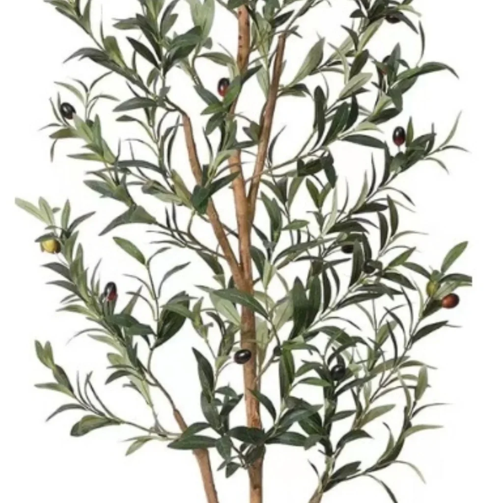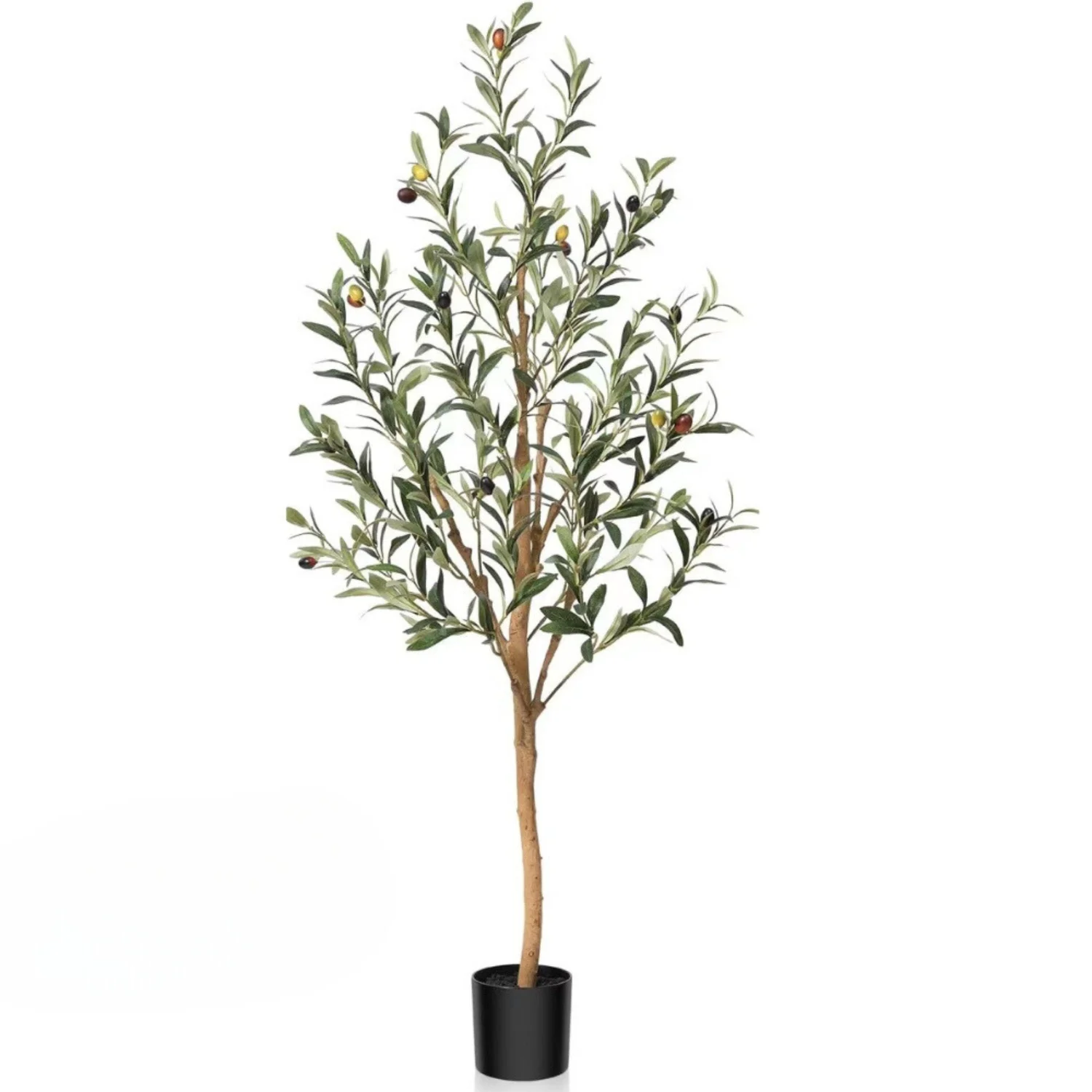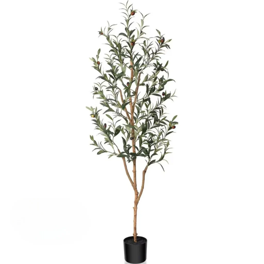 Faux Olive Tree in Pot features lifelike silvery-green dual-tone olive foliage, natural textured wood trunks with realistic gradient fruit accents, paired with a sturdy integrated pot base for instant display. Crafted with premium fade-resistant materials for long-lasting durability, this low-maintenance faux tree needs zero watering or pruning, retaining lush botanical beauty year-round. Ideal indoor decor for home & office, it infuses spaces with timeless Mediterranean elegance effortlessly.