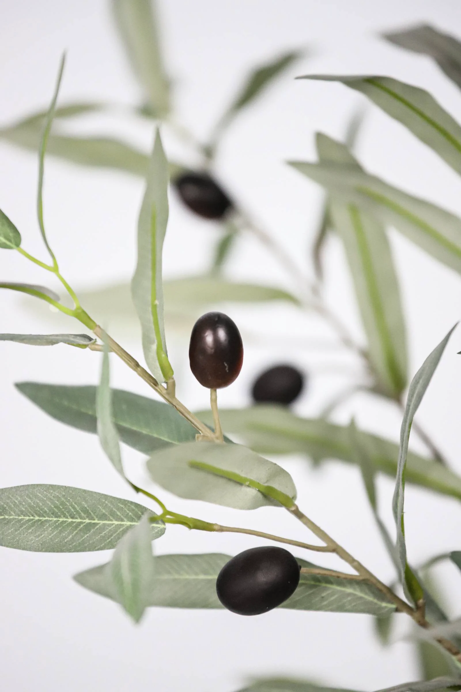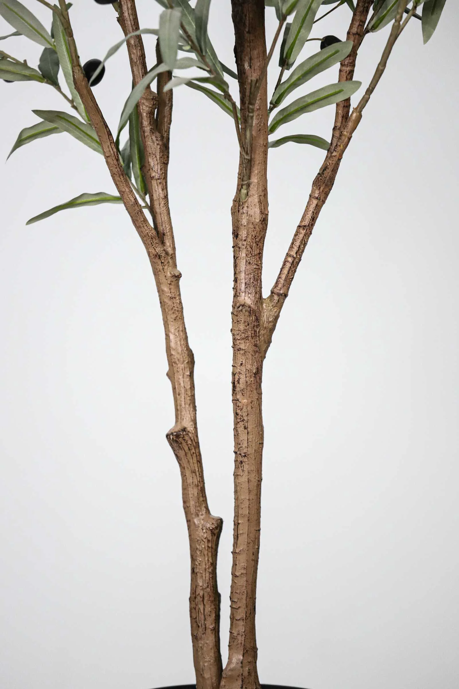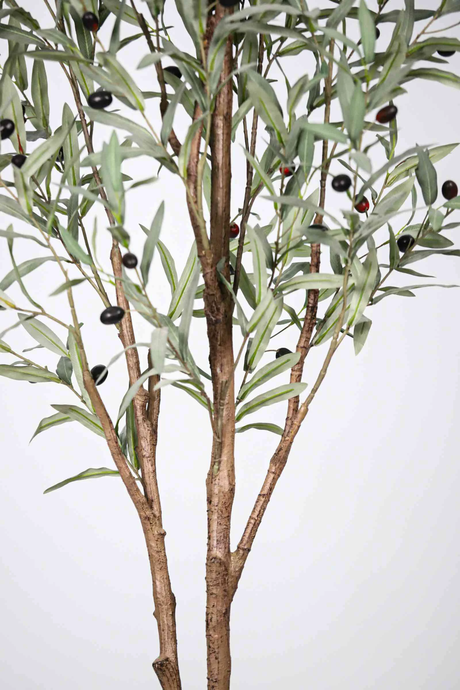 This faux Olive tree features gradient foam olive fruits of varying sizes, weathered white-tipped leaves, and a naturally colored trunk. Realistic, durable, and perfect for indoor décor or commercial display.