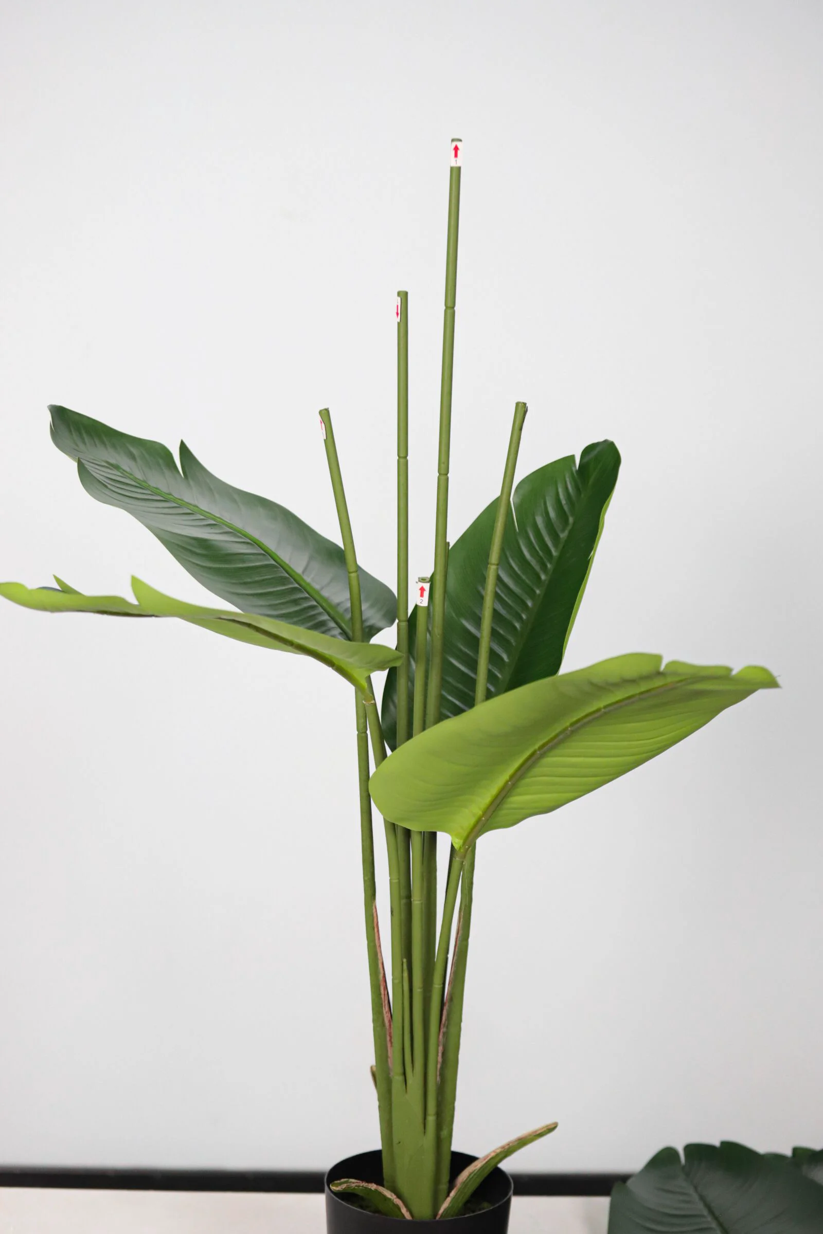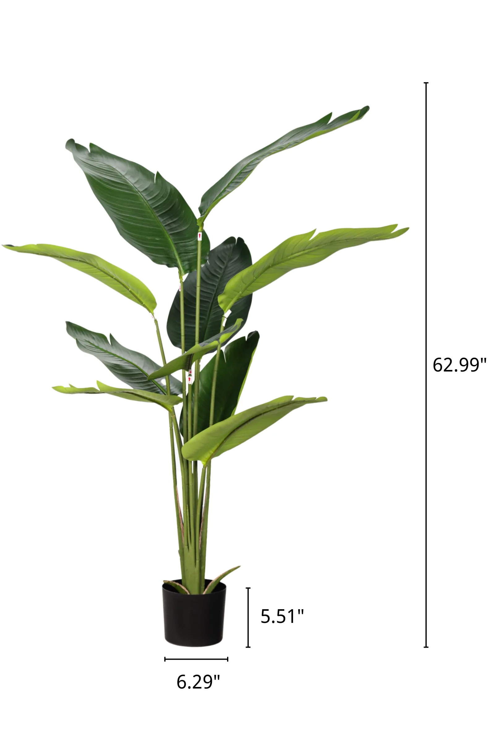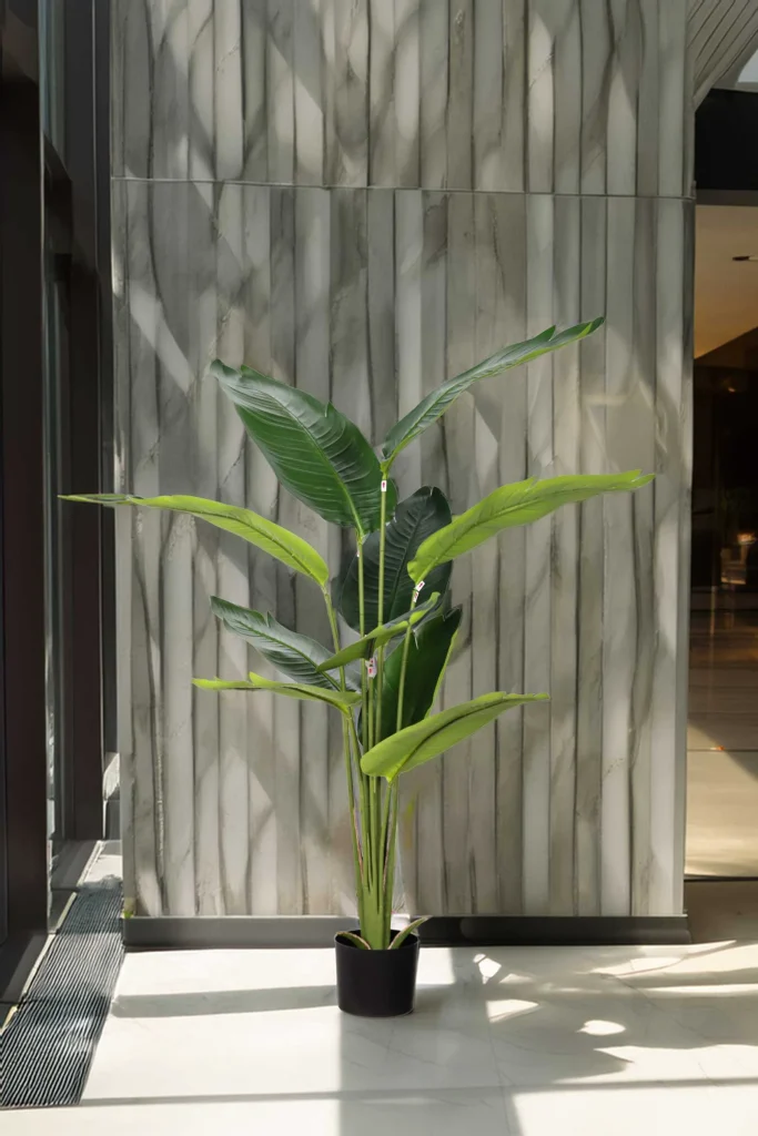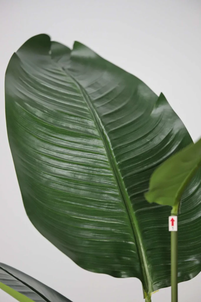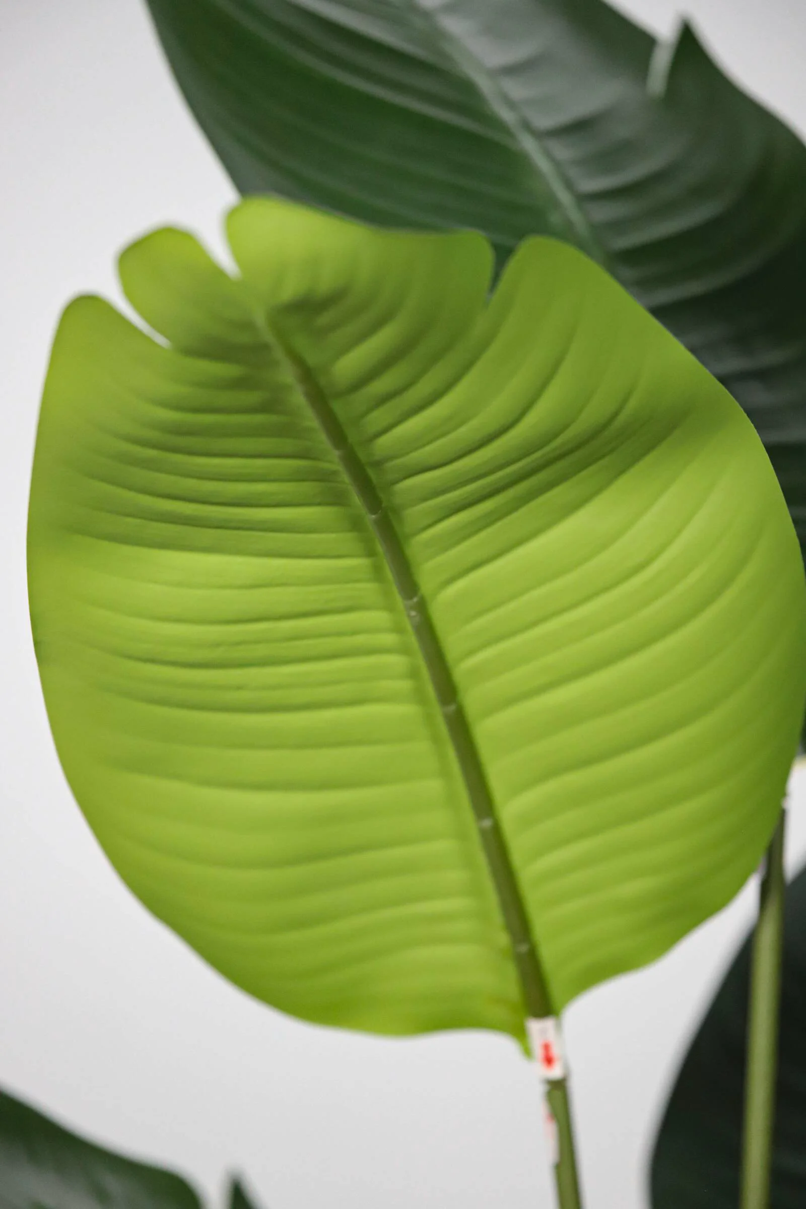 Bring the tropics indoors with our Travelers Palm artificial tree, designed with stunning attention to detail. This faux palm features removable leaves for easy transport and styling, while the fabric-wrapped stems offer a natural, realistic texture. The leaves are securely attached with a clean finish on the back—no peeling, no mess.
