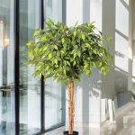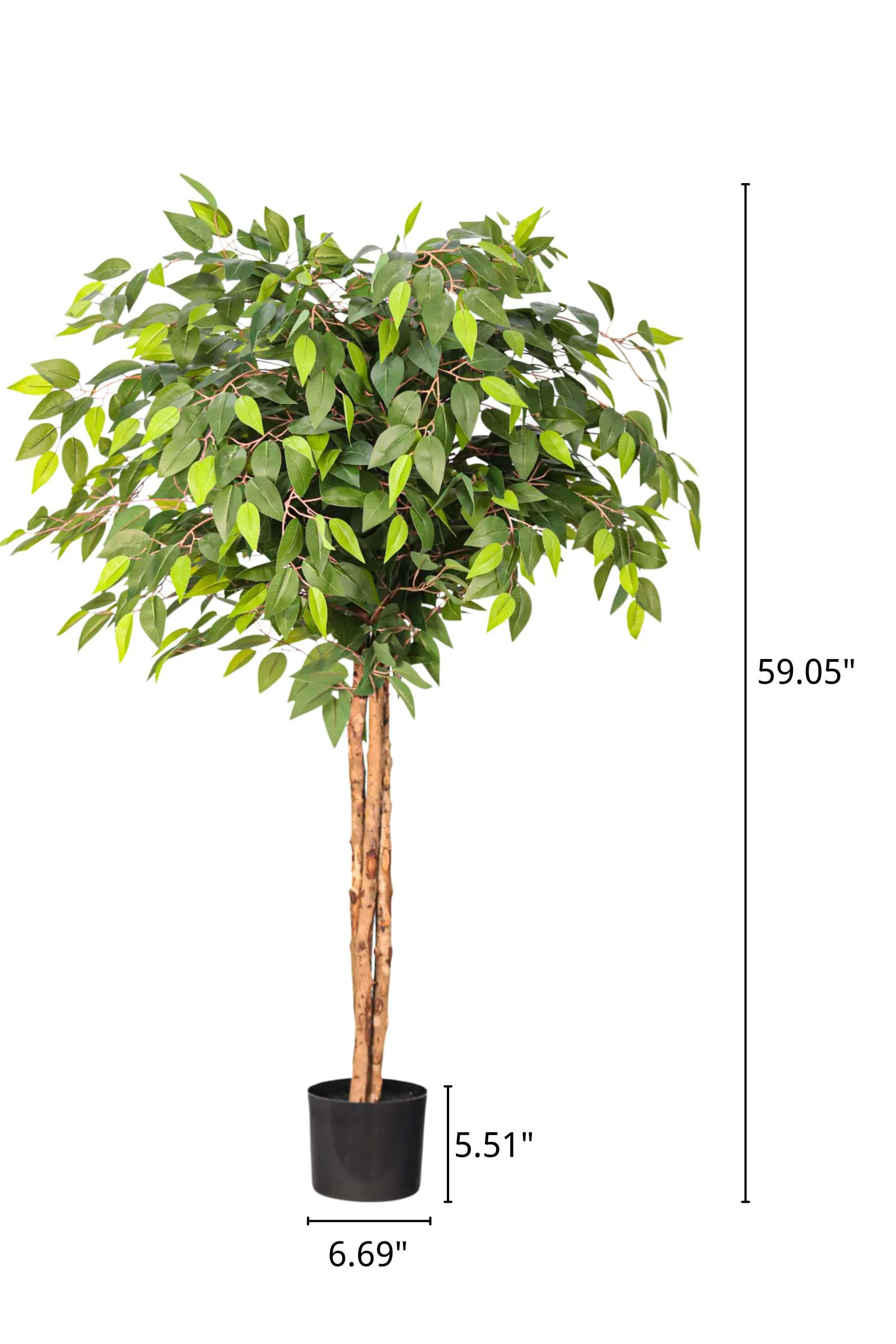 True Trunk Ficus Artificial Trees-59.05″ features an authentic natural wood true trunk with realistic textured bark, paired with dense lush layered green foliage and lifelike delicate leaf veins for genuine botanical appeal. Crafted with premium fade-resistant durable materials, this 59.05-inch faux ficus tree is 100% maintenance-free with zero watering or pruning needed, retaining full lush form year-round. Ideal for indoor home & office decor, effortlessly infusing spaces with timeless modern greenery elegance and natural organic charm.