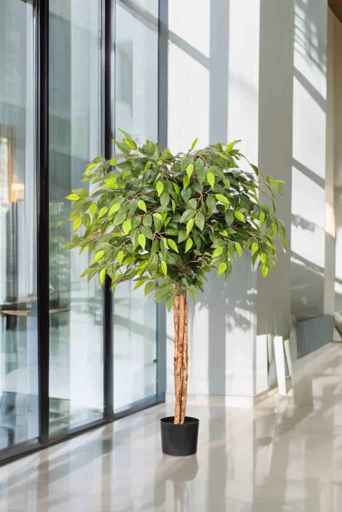 Bring natural beauty into your space with our Ficus artificial trees. The trunk is carefully color-treated for a real wood look, and the stems are wrapped with green floral tape for added realism. With dense, layered leaves in mixed green tones, this tree looks full and lifelike from every angle. The shape is natural and well-balanced, perfect for homes, offices, shops, or event décor. No watering, no mess – just timeless greenery.