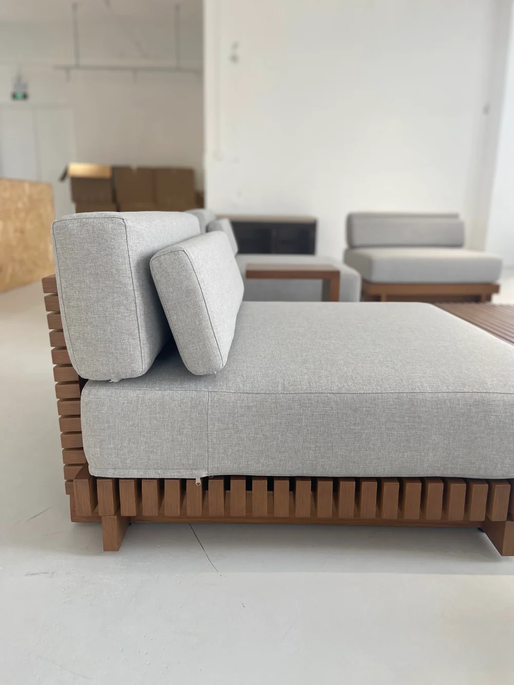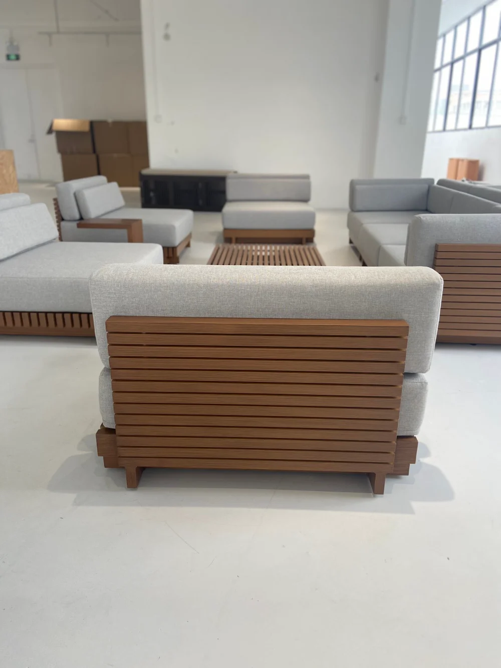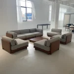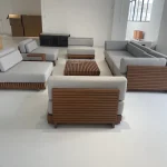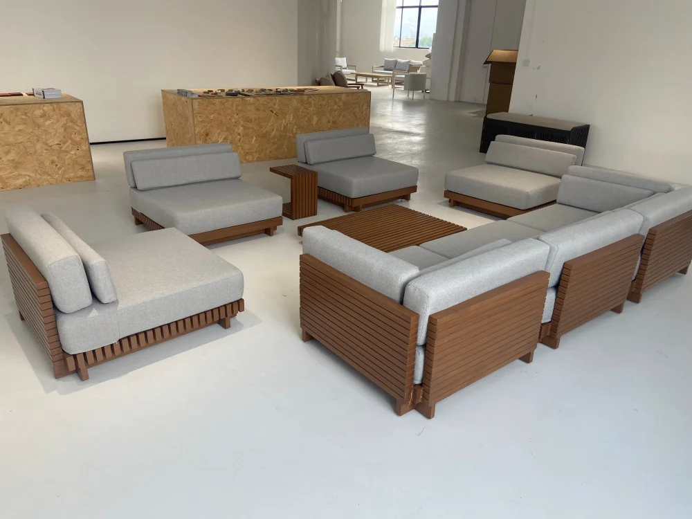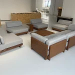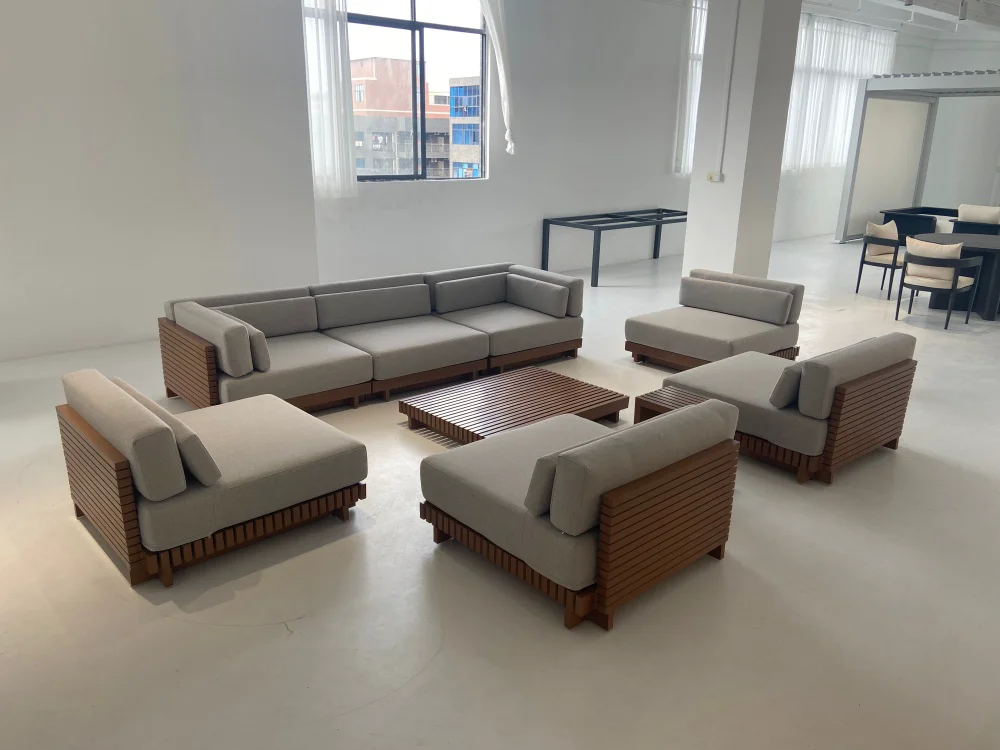 We primarily use durable materials like Aluminum, Wicker/Rattan, and Teak/Acacia wood. Aluminum is best for wet/coastal areas as it won't rust. Wicker is popular for its lightweight and weather-resistant resin. Teak offers a classic look that naturally weathers to a silvery-gray patina.